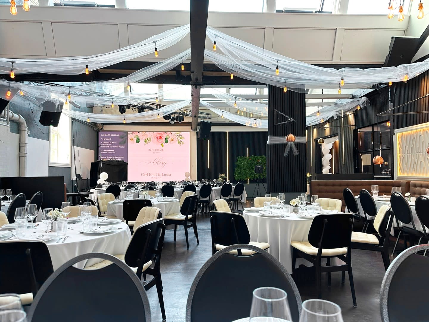 Oplev charmen i Schillers unikke lokaler, hvor fortid og nutid mødes i perfekt harmoni. Ballroom byder på en eksklusiv atmosfære med høje lofter, smukke detaljer og fleksible indretningsløsninger. De store ovenlysvinduer bader rummet i naturligt lys og skaber en særlig stemning, der kan tilpasses ethvert arrangement. Udnyt den tilstødende lounge og den hyggelige have for at give jeres gæster en altomfattende oplevelse. I sommermånederne lokker den grønne gårdhave med muligheder for udendørs aktiviteter, fra velkomstdrinks til grill-arrangementer under åben himmel.