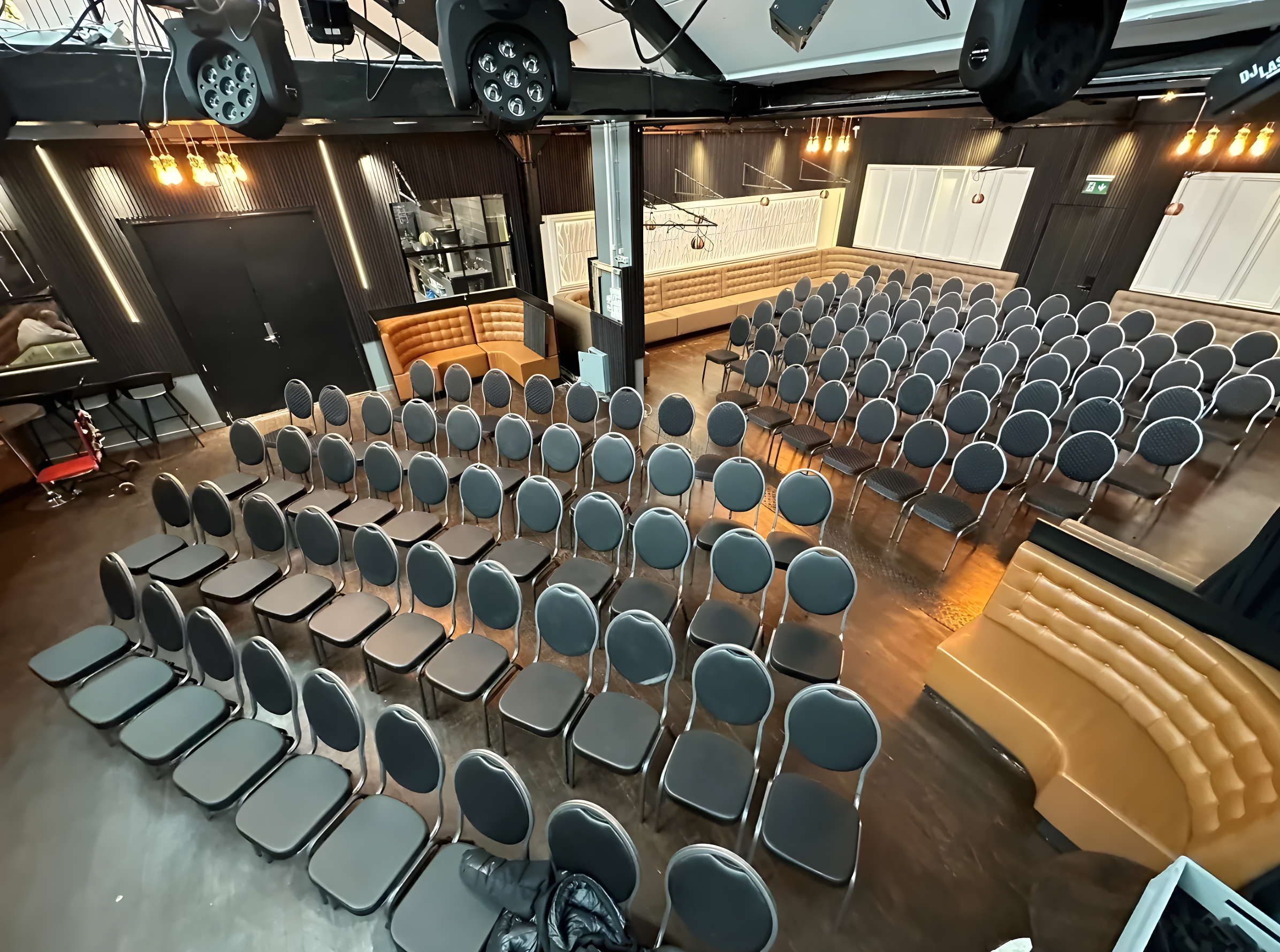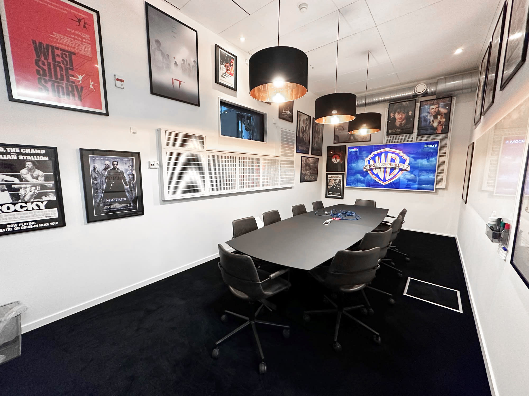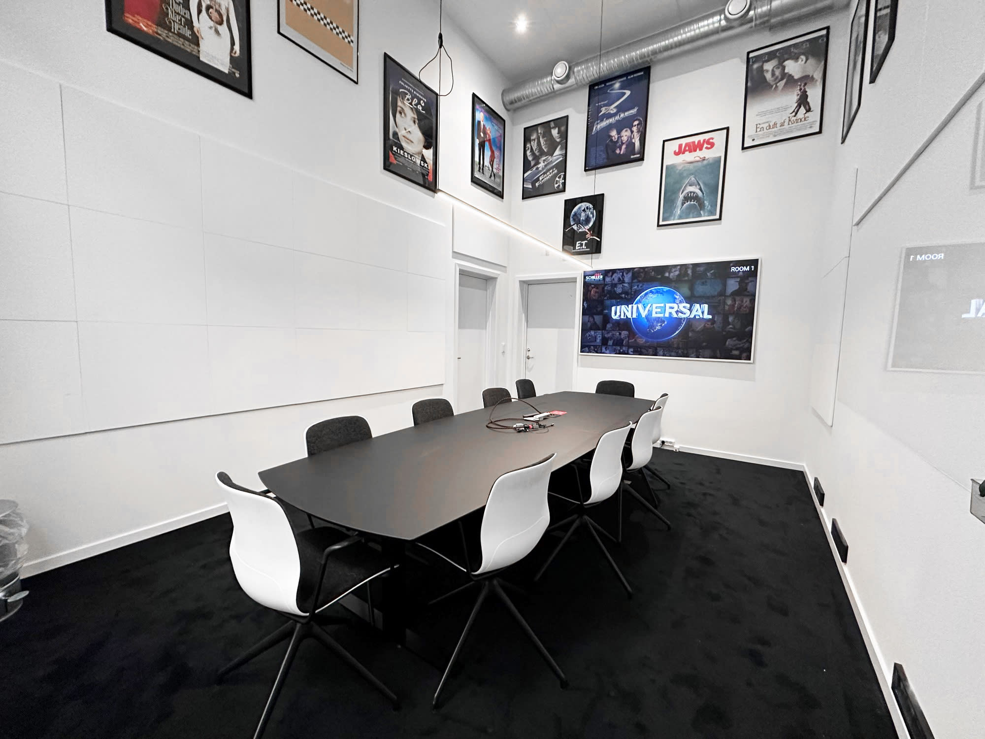 Schiller Office Hotel byder på en række mødelokaler, der er designet til at inspirere og facilitere produktivitet. De syv mødelokaler, hvert med sit unikke filmselskabs-tema, tilbyder en intim og futuristisk atmosfære, der stimulerer kreativitet og fokus. Kontrasten mellem sorte møbler, hvide vægge og fritlagte rør skaber et visuelt slående miljø, mens vintage film-plakater minder om bygningens fascinerende fortid som hjemsted for et fotograf- og filmselskab. Ballroom, med sit høje loft og fleksible indretning, er ideelt til større konferencer eller firmaarrangementer, hvor I kan imponere kunder og inspirere medarbejdere. Om sommeren tilbyder den grønne have en forfriskende kulisse for uformelle møder eller teambuilding-aktiviteter.