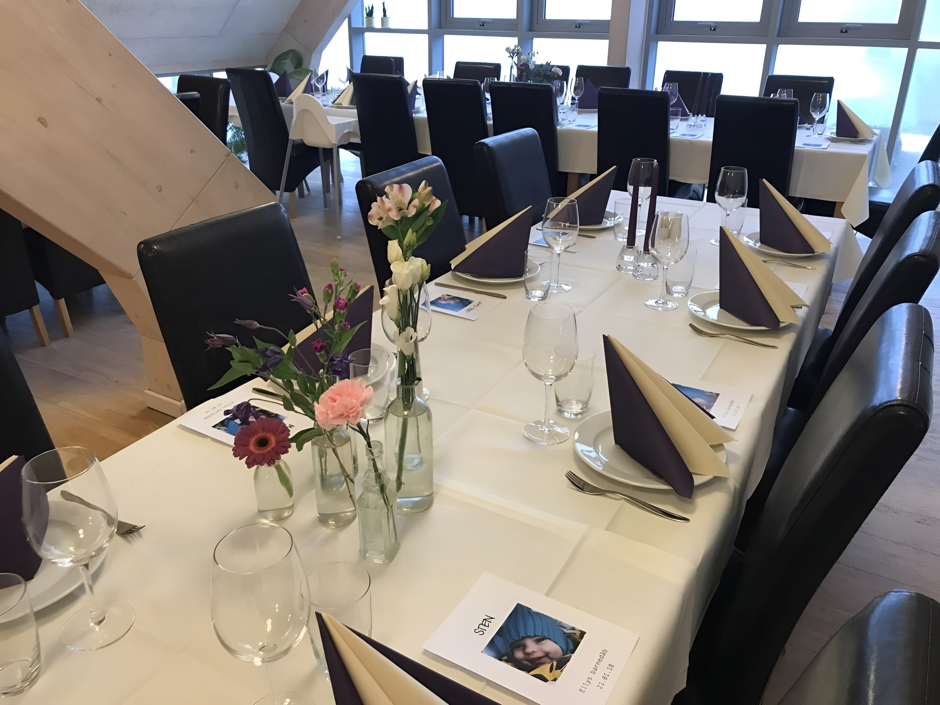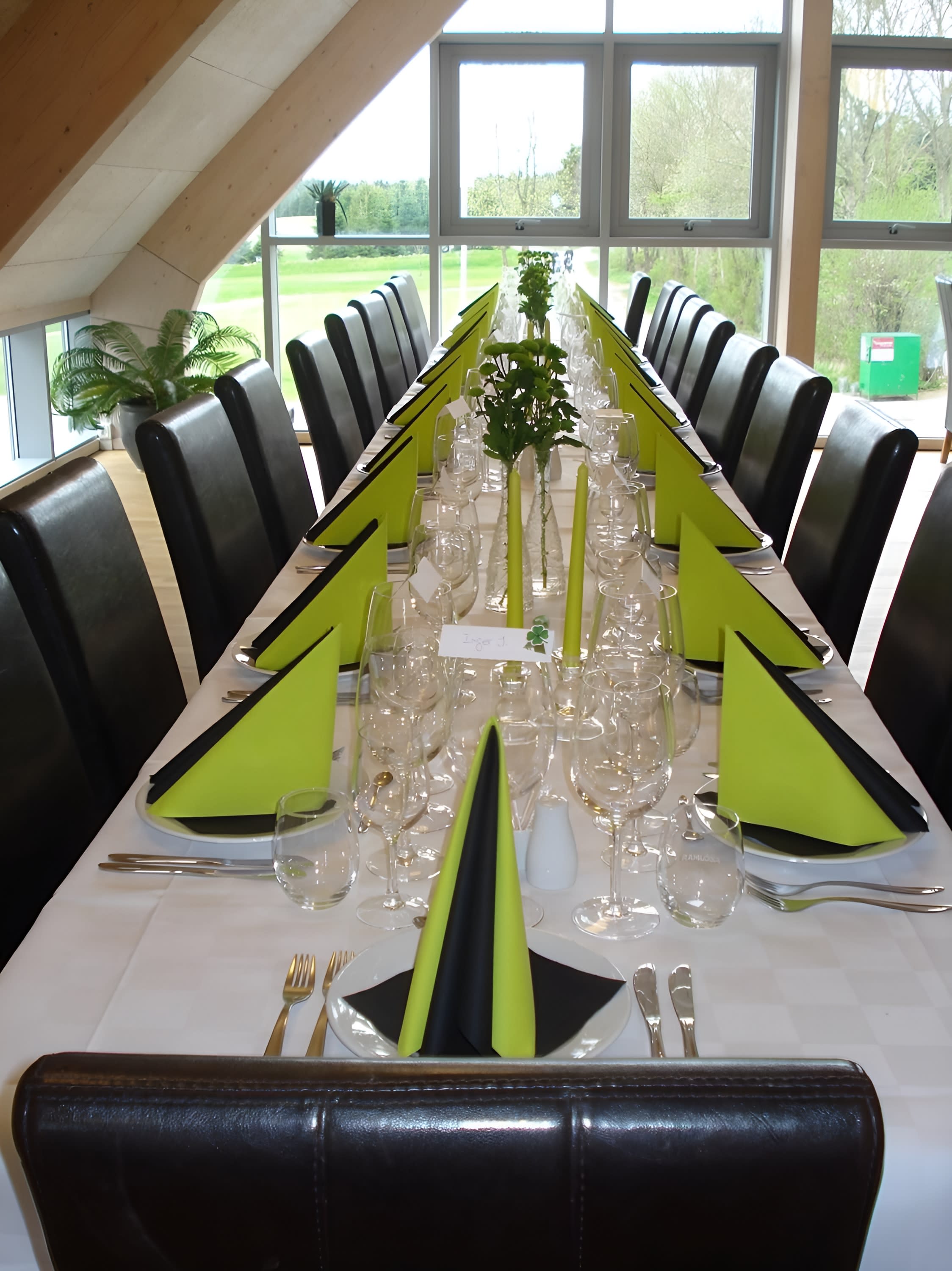 Vi har mulighed for runde, aflange eller kvadratiske borde. Vær dog opmærksom på at runde borde kun er muligt til max 80 gæster i den store festsal.