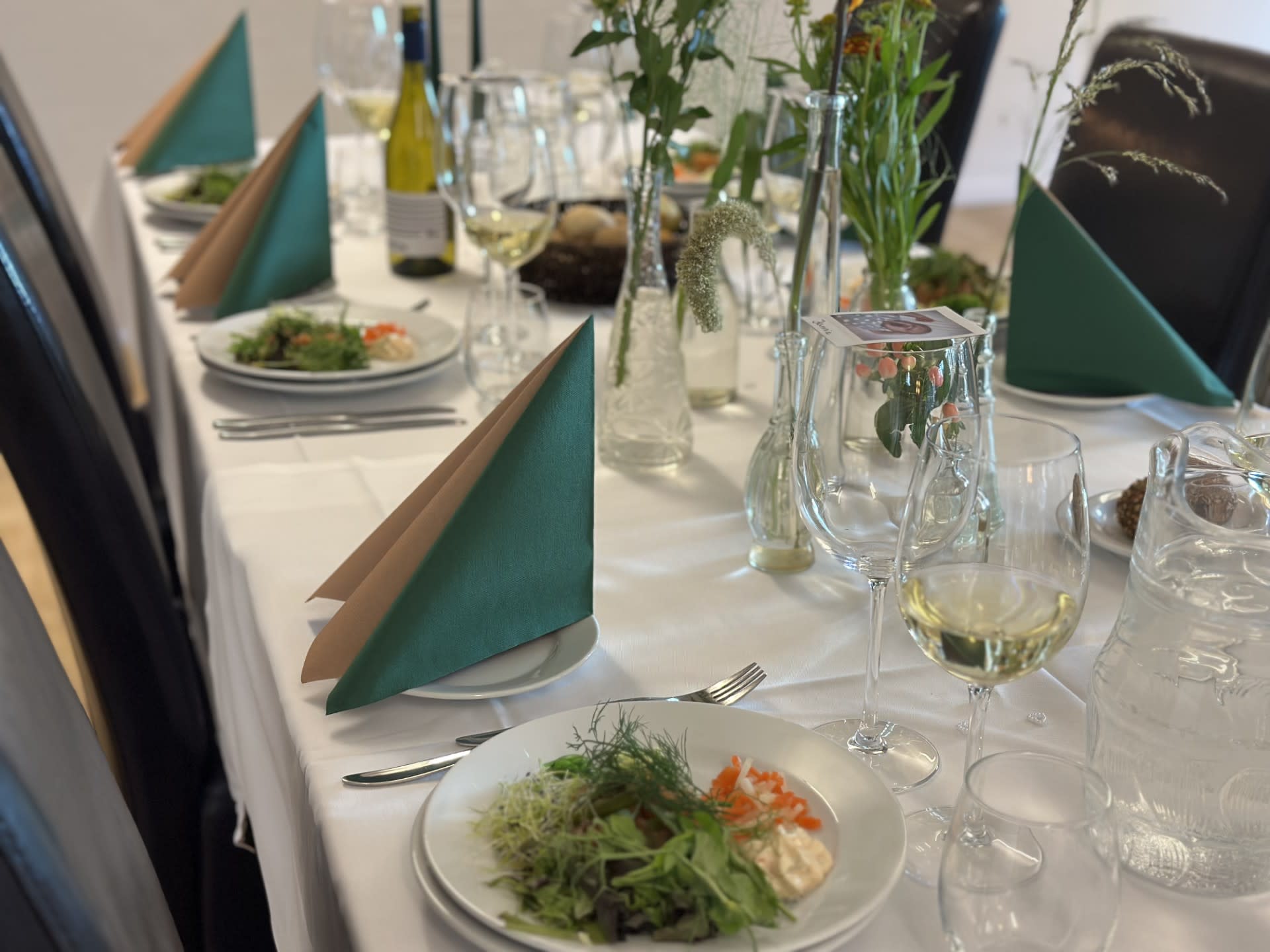 Vi har mulighed for runde, aflange eller kvadratiske borde. Vær dog opmærksom på at runde borde kun er muligt til max 80 gæster i den store festsal.