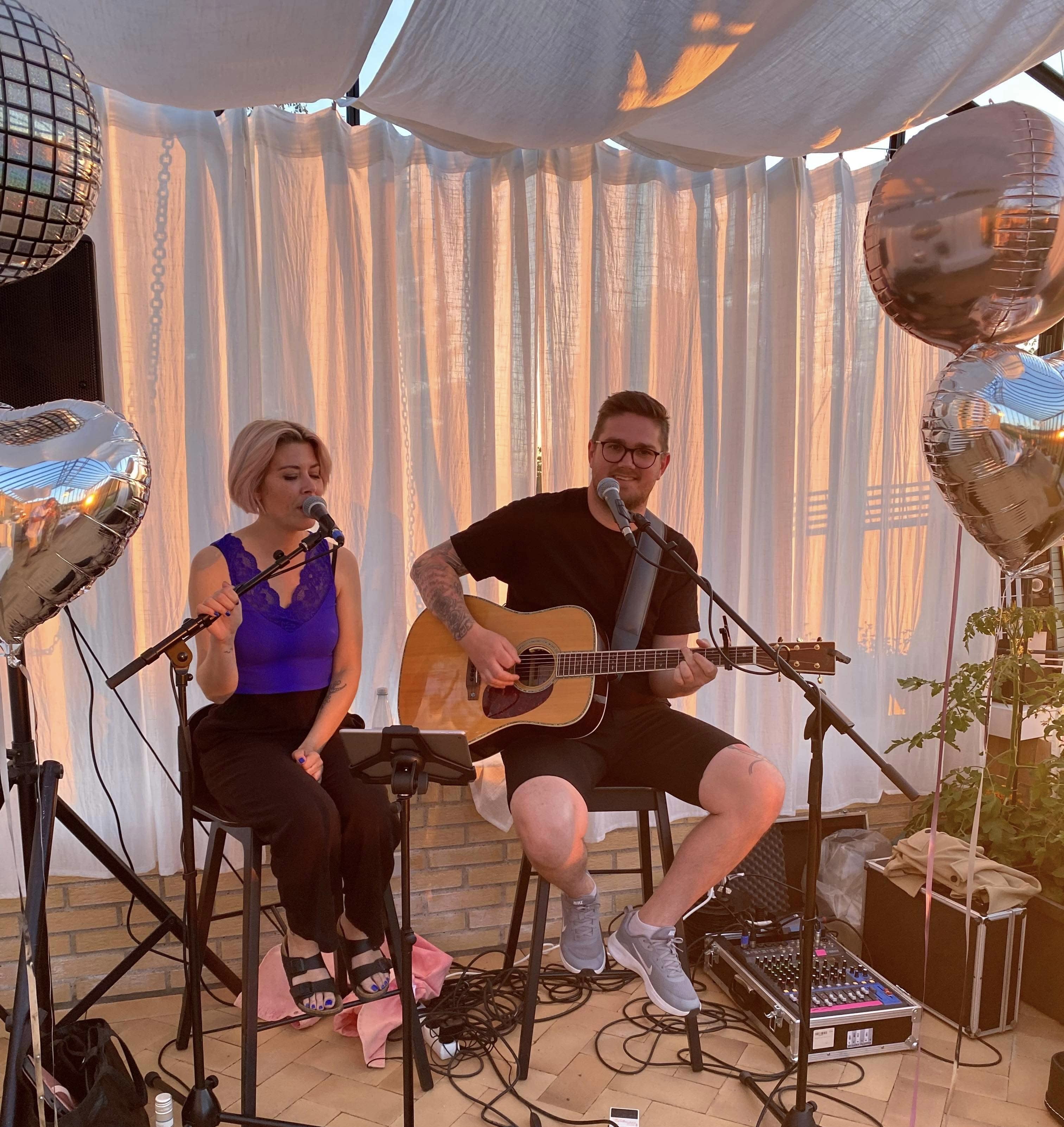 Vi leverer stemningsfyldt, velkendt akustisk musik og sang af høj kvalitet, som giver en dejlig afslappet atmosfære.